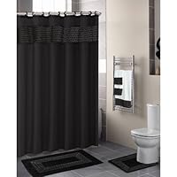 Read Best Reviews of Black FLORAL RIBBON 18-Piece Bathroom Set: 2-Rugs/Mats, 1-Fabric Shower Curtain, 12-Fabric Covered Here