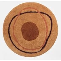This rug matches the Dot Swirl shower curtain. It is small so perfect for a small bathroom. The colors are great and the design modern. It is also very soft and cushy on the feet. I matched the rug and curtain with chocolate brown towels and the bathroom looks awesome.