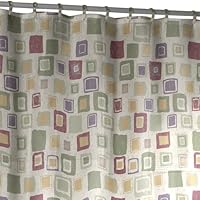 This shower curtain looks great in our tiny bathroom; yes, it's thin, but I like it.I put a clear plastic liner with it, and when you take a shower, it's nice that some light comes through.It's funky and fun; the silvery sparkle adds a lot to the overall look.I painted the walls a lovely gray, and the cabinets too, and with some black and aqua accents it looks so nice.I would recommend this shower curtain to anyone who likes a contemporary, fun style, but who is on a budget and can't afford the really expensive stuff.Read Best Reviews of Maytex Geo Sparkle Fabric Shower Curtain Here