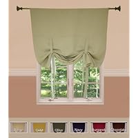 I bought two of the beige curtains for my daughter's room.At three-years-old, she often wakes with the sun.The curtains look nice and simple, and the beige fabric is not very shiny but is soft.I love the tie up option since we have window AC units in some of our windows.However, my complaint is that they don't block nearly as much light as they claim.I'd say that the room is less than 75% darker.You can see the light shining through the openings of the blinds under the curtains.Also, the light easily escapes around the edges of the curtains, so be sure to mount them as close to the window frame as possible.I'd suggest ordering a darker color since it might block more light.I'll definitely keep the curtains--but I may move them to my room and look for something that will block even more light in her room.Read Best Reviews of Tie-Up Shade Solid Insulated Thermal Blackout Window Shade 63"L - TUB Here