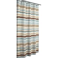 This shower curtain looked great despite being plastic and lightweight but it is not colorfast. Normally I wash shower curtains once in a while but I've never washed this one--still the colors on the outside (where a had might occasionally pull the curtain) bled off. There are white spots through the stripes now (see my photo closeup attached).I am writing this review because it took a few months for this to happen, but no one should pay for a curtain that looks shabby within the first six months. I guess there is a problem with the chemical coloring process. Unless the price drops well below the eighteen dollars shown as I write this, I would opt for a different curtain.The color scheme is just right. It's a bit brighter in-person than in the pictures which was a plus for me. It is versatile enough to match many color schemes (light blue, white, brown, and beige). I uploaded a picture on Amazon so check it out.