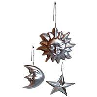 These are great. Never dreamt shower curtain hooks came in so many styles. Definetly tie in the shower curtain and other articles/colours in the bathroom. The stars,moons and suns are a more true type (lustre) of silver...not that shiny, cheap look. All pieces arrived in perfect condition and are quite strong. XLNT quality.