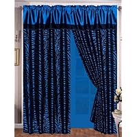Buy 4 Pieces Faux Silk Navy Blue with Black Zebra Window Curtain / Drape Set with Sheer Backing Now