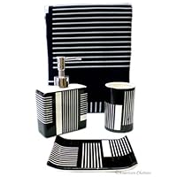 4pc Black & White Bathroom Accessory Set Shower Curtain