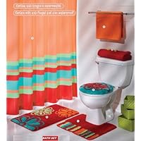 Orange Green Red Curtain Mat Rug Bath Set 5 Pcs