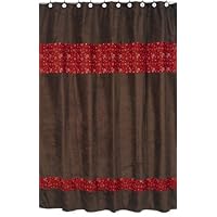 The shower curtain arrived today. It is made with a pseudo suede brown body and cotton paisley stripes. It feels very thin for a $50 shower curtain. The main complaint I have is that the holes for the hooks don't match up to a basic shower curtain liner, not sure if anyone thought to measure before adding the buttonholes or what the deal is. Not sure how I'm going to work around this problem yet, might have to return it.