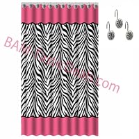 Buy ZEBRA Black & Pink Fabric Shower Curtain with 12 Matching Metal/Ceramic Shower Curtain Hooks/Rings Now