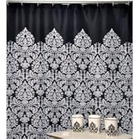 Waverly Essence Onyx Black & White Damask 16 Piece Shower Curtain Set With Hooks, Tumbler, Toothbru