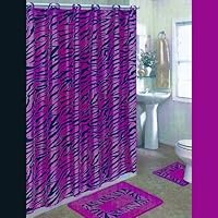 Black and Pink Zebra 15-piece Bathroom Set: 2-rugs/mats, 1-fabric Shower Curtain, 12-fabric Covered