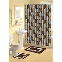 Home Dynamix Bath Boutique Shower Curtain and Bath Rug Set: 339-309 Metro Lights Blue: 15 Piece Bat