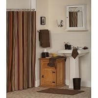 I received this shower curtain the other day and before hanging it, washed it on delicate cycle and partially tumbled dried on low.The threads between the actual curtain and the attached cream colored back liner pulled and bunched the bottom of the curtain up.It looked terrible.The back liner of the curtain also had a tear at one of the seams, so I went inside and cut all the threads hoping to loosen up the bunching at the bottom, which it did.However, because the threads were pulled, the back liner very loosely hangs lower than the front of actual curtain that you see.I don't know if this is bad quality, or just a one time mishap with this product that I happened to experience.With all that being said, the color and quality of the curtain itself is beautiful; the picture doesn't do it justice.There are more white/cream and orange stripes in it than what shows.Also, it is made of a cottony fabric that has a "rustic wrinkly" effect to it.If you're looking for something smooth/sleek/streamline, this isn't the right product for you, as the title states it does look like it would belong in a lodge.Last, I would give this 4-5 stars if it hadn't ripped and bunched on me.