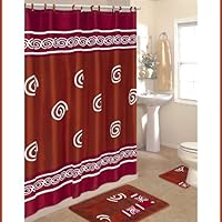 Buy Burgundy/Copper 15-piece Bathroom Set: 2-rugs/mats, 1-fabric Shower Curtain, 12-fabric Covered Rings Now