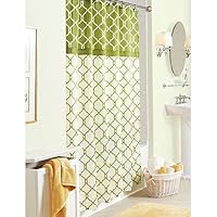 Buy Trellis Saddle Green & Cream Mist Semi-Sheer Fabric Shower Curtain Now